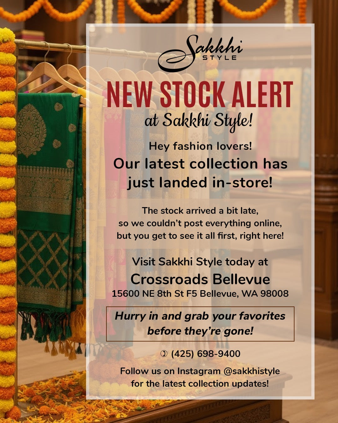 Discover unique, traditionally inspired Indian attire for the whole family at Sakkhi Style, your go-to boutique for bespoke designs and fine craftsmanship. Visit us at our exclusive Bellevue store or shop online for our latest collection of sarees, kurtis, salwars, children's wear, and jewellery.Seattle.