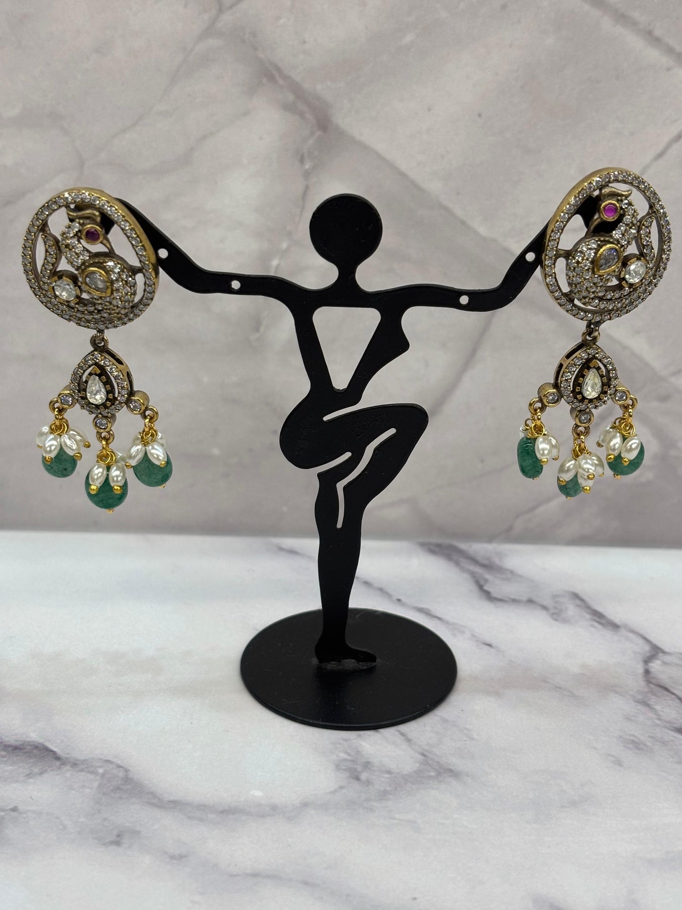 The matching earrings feature a coordinated design with bead drops, completing the traditional look.