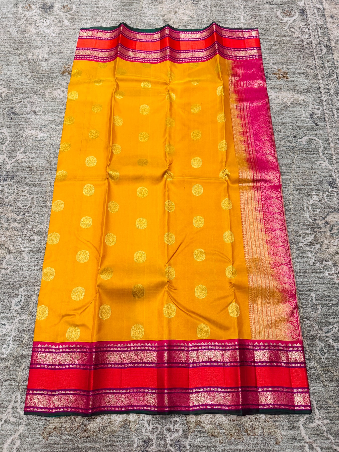 Mustard yellow body with gold zari butta motifs