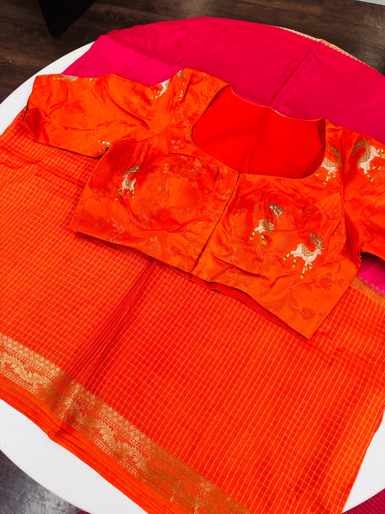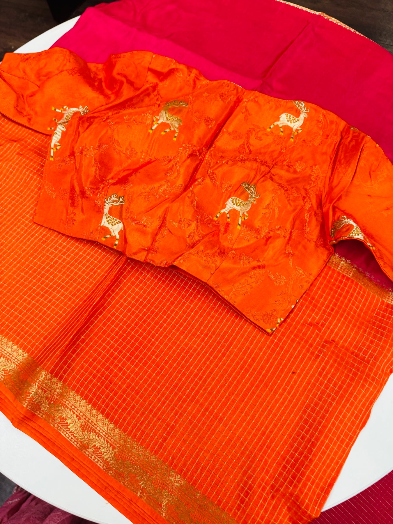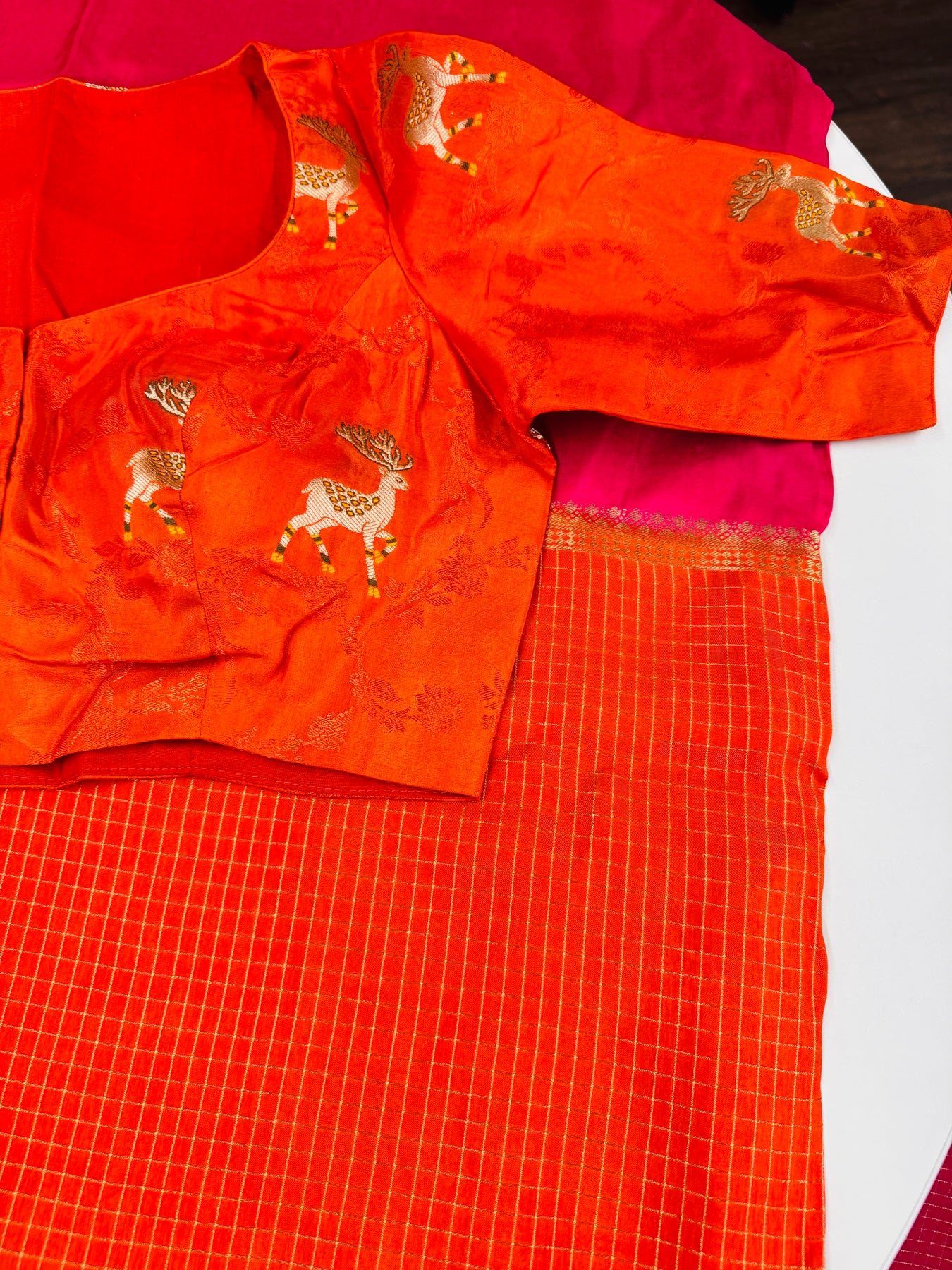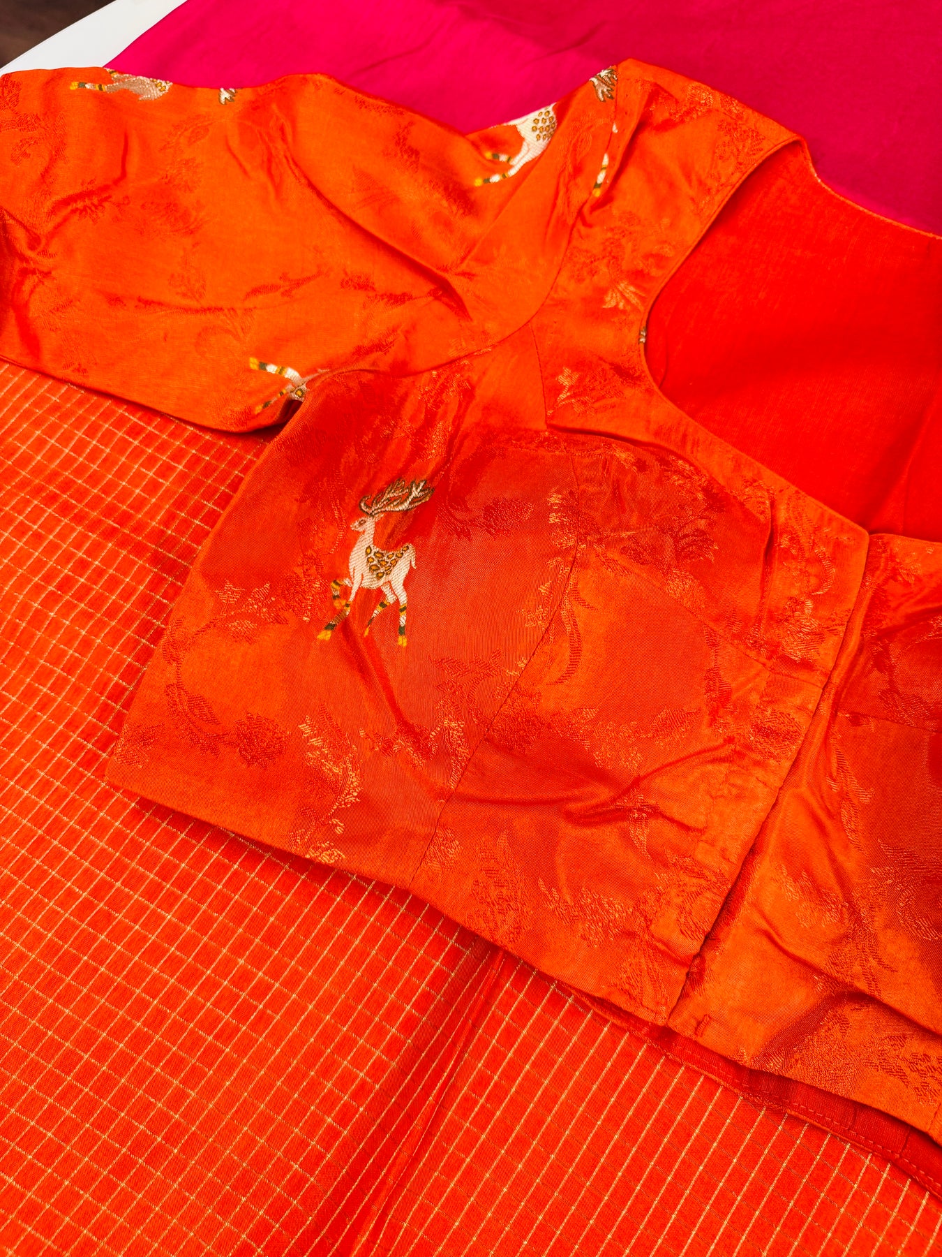 Designer orange blouse with unique deer motifs